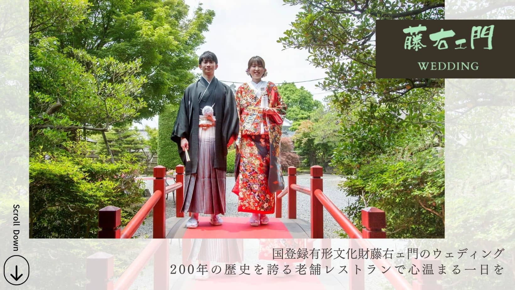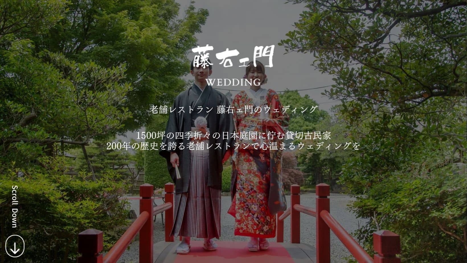 藤右ェ門のウエディングは、お二人とゲストだけの特別なお時間をお過ごし頂けるよう、一日一組の完全貸切。